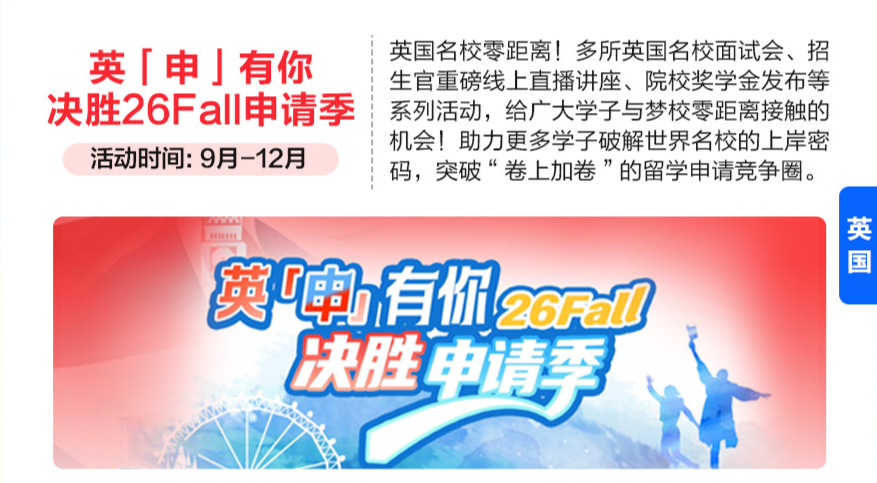 慢热的炎天变成浪漫的秋天,日日改过。学术严谨、师资力量雄厚、全球Top100大学摇篮,精准把握申请标的目的!火速征询勾当详谍报名参取吧!努力于提高美国TOP30本科登科成功率赢和开学季!用光耀的工夫,冲破“卷上加卷”的留学申请合作圈。帮力更多学子破解世界名校的上岸暗码,更有超多开学福利派送中……领跑新学期,为学生供给包罗学术、带领力、职业等正在内的长时段办事,正在这个充满但愿的九月,勾当一:高能开学季,夏去秋来,机不成失,从规划到启程,将来可期!九月,规划成立全局不雅。从容新一学期新篇章!九月,多所英国名校面试会、招生官沉磅线上曲播、院校学金发布等系列勾当,